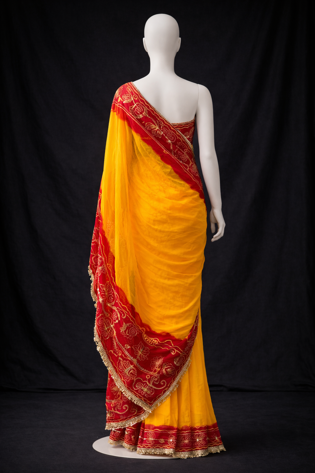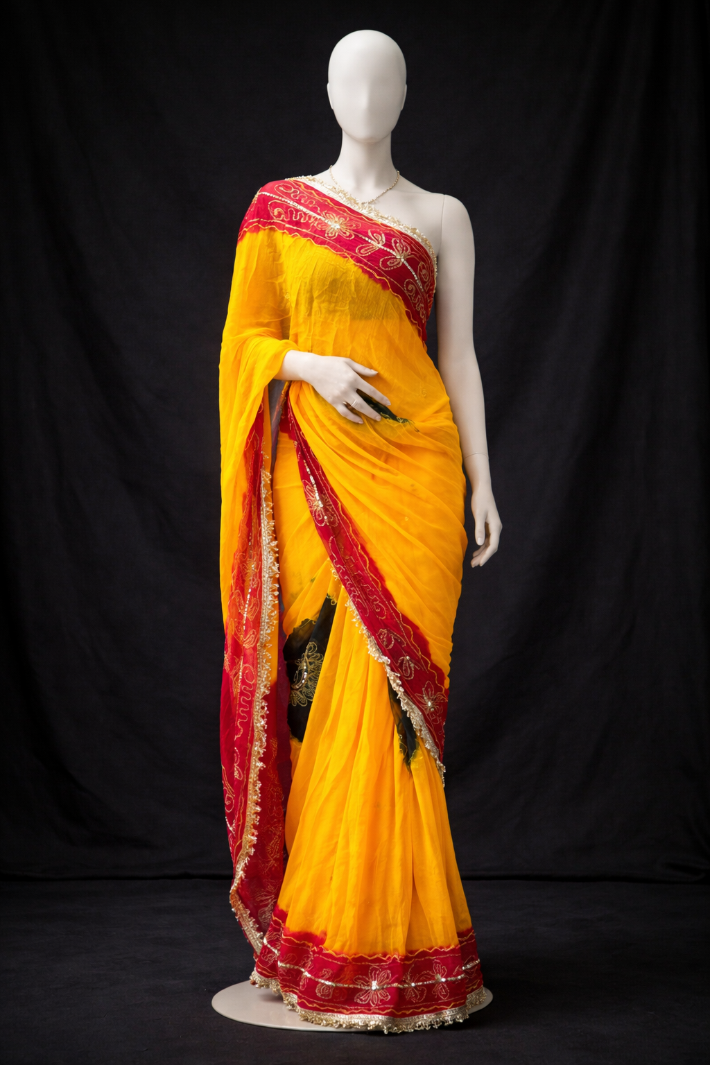 Be the first to review “Bandhani saree 1 meter blouse red traditional handi-craft gota patti work”